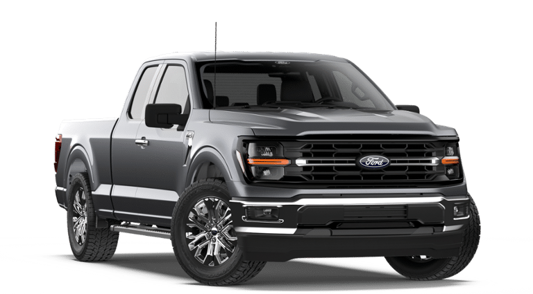 - The 2026 Ford F-150 XLT 4x4 SuperCab blends rugged capability with modern comfort, making it a strong choice for both work and everyday driving. Finished in Carbonized Gray Metallic, this truck has a bold, confident presence, complemented by the XLT Chrome Appearance Package, which adds chrome front and rear bumpers, 20-inch chrome-like wheels, and bright anodized step bars for a sharp, elevated look. Under the hood, the powerful 3.5L V6 EcoBoost engine is paired with a smooth 10-speed automatic transmission, delivering impressive performance and towing capability. With a 7,100 lb GVWR package, 3.31 axle ratio, and Class IV trailer hitch with smart trailer tow connector, this F-150 is built to handle tough jobs with ease. The extended range 36-gallon fuel tank helps keep you on the road longer, whether you're heading to the job site or out for a weekend adventure. Inside, the Dark Slate cloth interior features a versatile 40/20/40 front seat configuration, along with an 8-way power drivers seat and dual-zone automatic climate control for added comfort. A 12-inch digital cluster and SYNC 4 system with a 12-inch touchscreen keep you connected and in control, while the built-in 5G modem and FordPass app compatibility enhance your driving experience with smart technology. This F-150 is equipped with a wide range of advanced safety and driver-assist features, including BLIS with Cross-Traffic Alert, Lane-Keeping System, Pre-Collision Assist with Automatic Emergency Braking, Reverse Brake Assist, and a rearview camera with parking sensors. Selectable drive modes and Auto Hold add confidence and convenience across a variety of road conditions. On the exterior, LED reflector headlamps, LED fog lamps, zone lighting, and a fully boxed steel frame highlight both functionality and durability. Practical features like a power tailgate lock, pickup box tie-down hooks, and rear privacy glass make this truck as useful as it is refined. The 2026 Ford F-150 XLT delivers the perfect balance of strength, technology, and everyday comfortready to take on whatever your day demands.