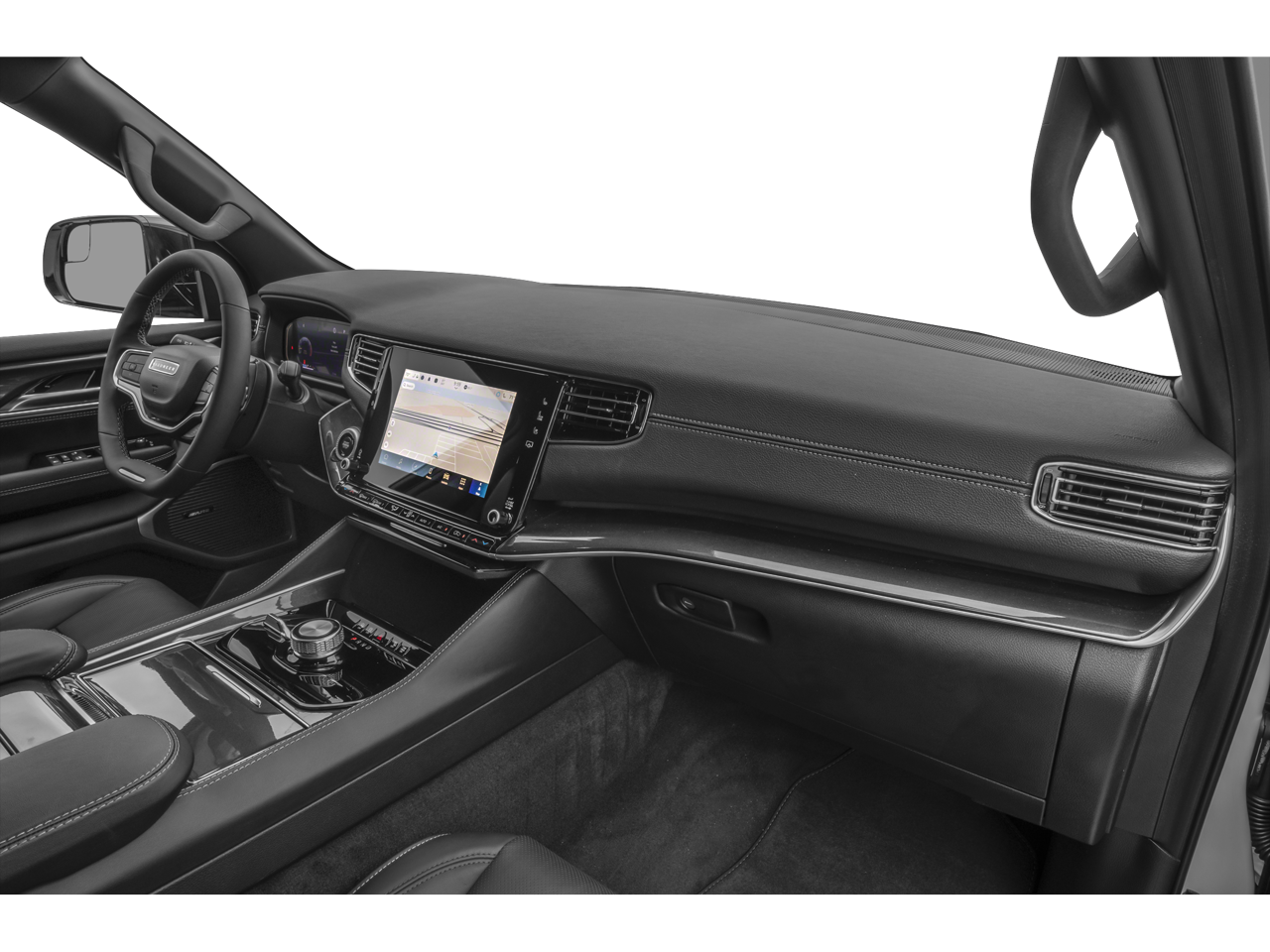 Powering it is Jeep's 5.7L HEMI V8 — 392hp, 404 lb-ft of torque, and towing up to 10,000 lbs. Quadra-Trac II 4WD with Active Drive Lock and Selec-Terrain gives this Wagoneer genuine off-road capability beneath its premium exterior. Fuel Saver cylinder deactivation recovers highway efficiency on long Michigan stretches.